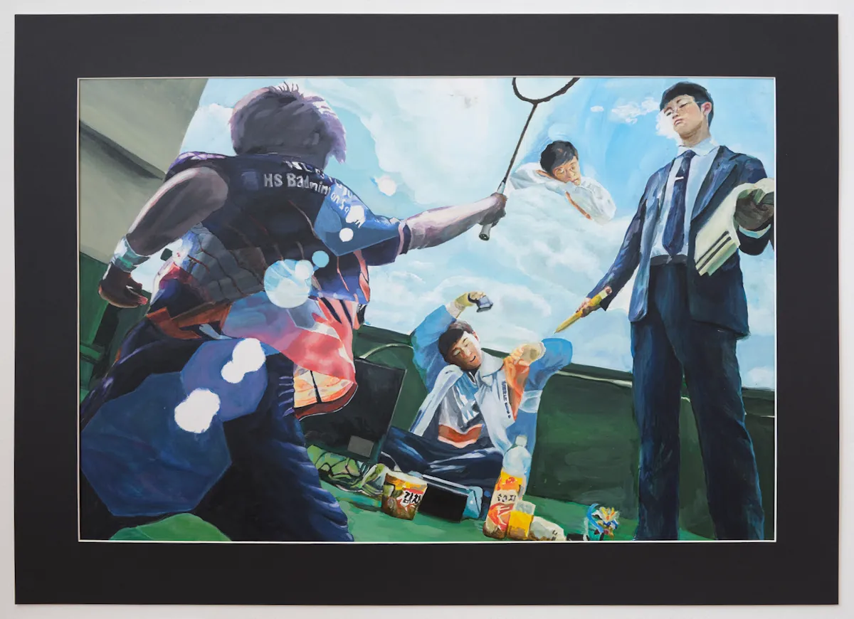 Metaphorically speaking, multiple mirrors may produce multiple reflections thus creating multiple or essential other versions of ourselves. This artwork is my self-portrait reflected by different big parts of my life: playing badminton, studying, playing video games, and sleeping. I found the green backdrop of my home to be the very background of these reflections leading up to the sky, as I am the viewer of these reflections integrating all these parts of myself.