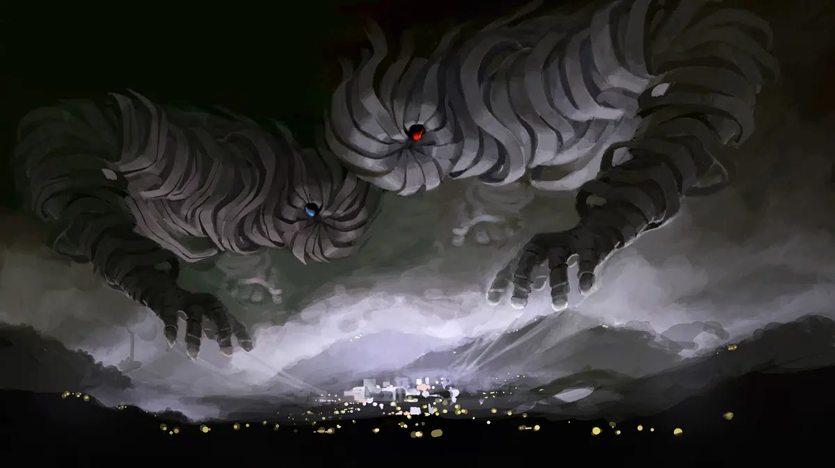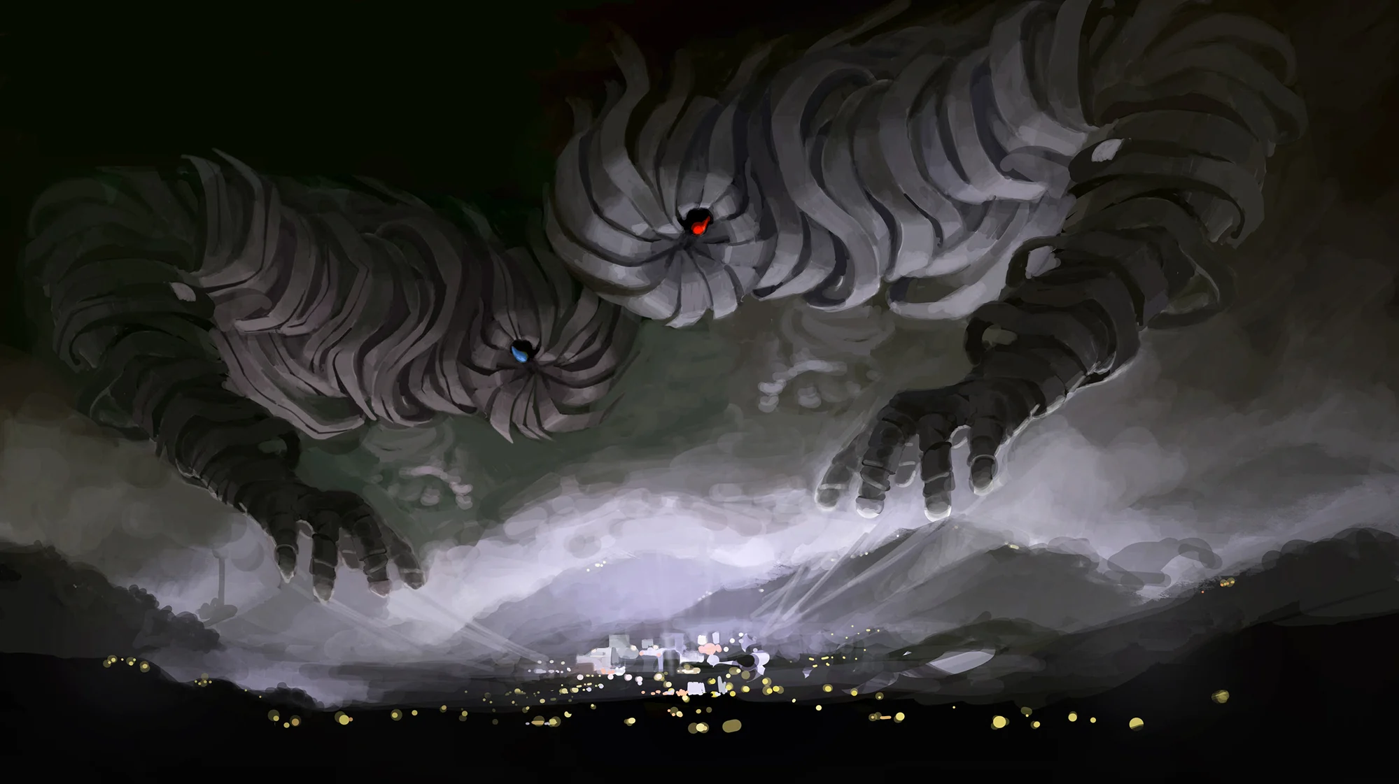 This artwork anthropomorphised the hurricane Maemi as two wind Dokkaebis (도깨비) from Korean mythology embodies humanity's tendency to turn natural forces into divine figures. The rough and seamless strokes symbolise humanity’s need to interpret and cope with nature’s destructive power through myth. Low-opacity strokes illustrate how Maemi's absurd strength controls and plays with the population, signifying the duality of nature's power - both fearsome and awe-inspiring.