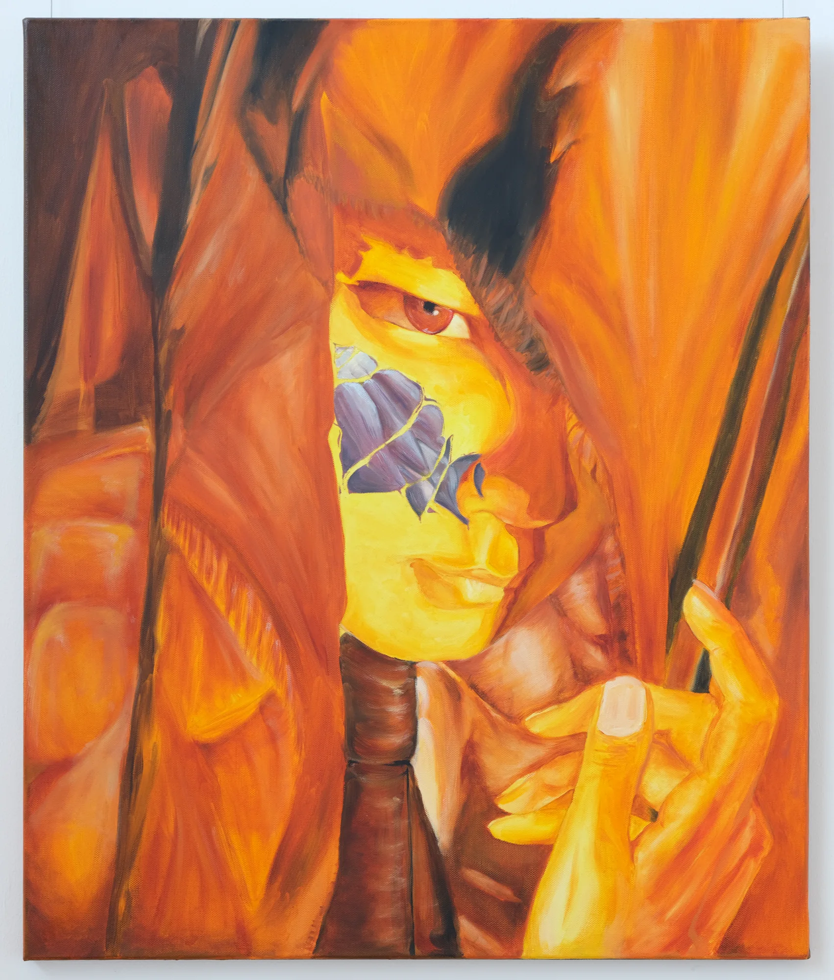 Redemption aims to portray the essence of altruism, criticising the morality of everyday human activities. A portion of the face remains beneath the veil, representing one’s adversity concealed when facing the public. Similarly, the repetition of the orange signifies a sense of comfort, which is reflected in the kindness of human nature. The use of grey and purple deliberately juxtaposes the rest of the painting, symbolising the cruelty of human actions - typically hidden under the surface.