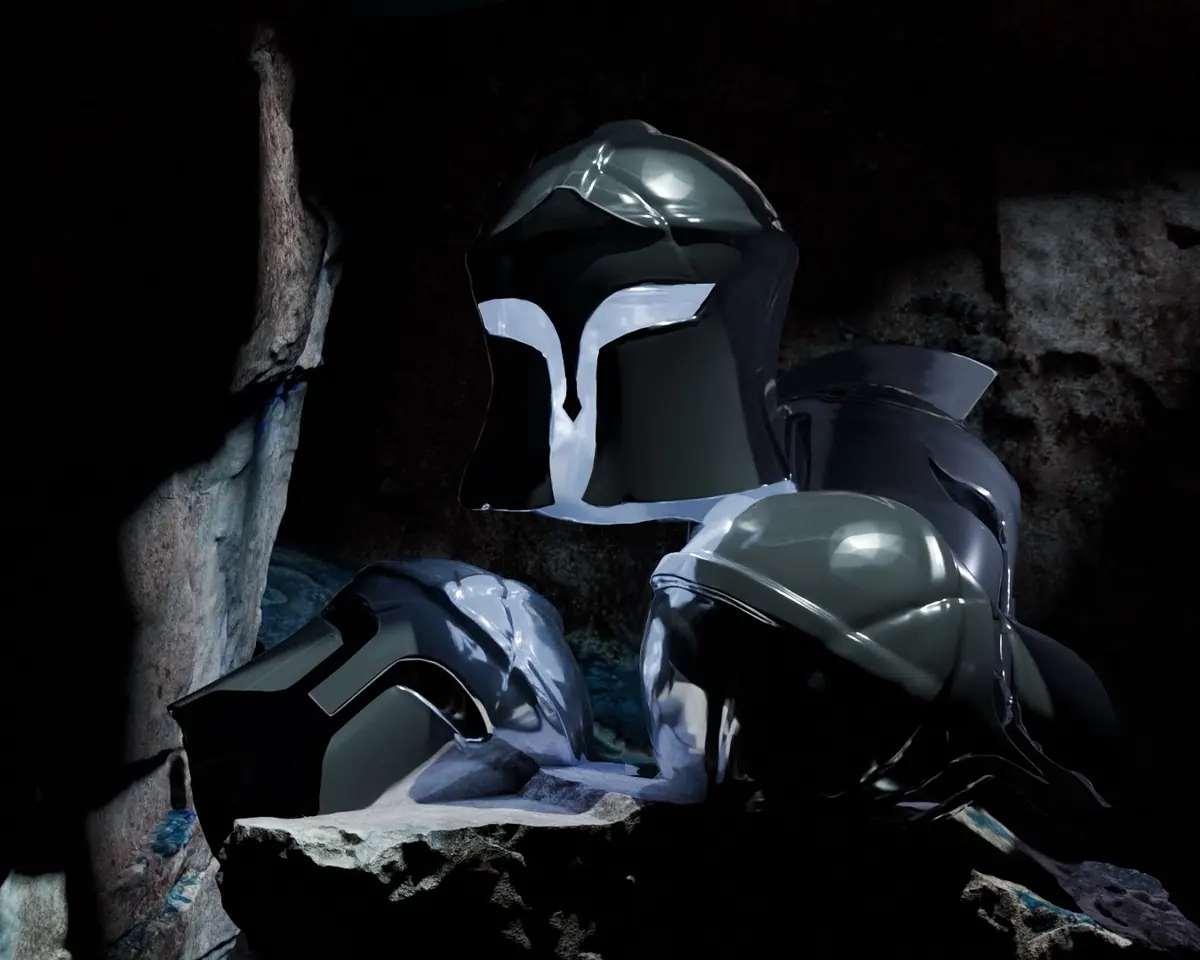 The Helm of Mortality portrays Death’s supremacy among apocalyptic harbingers from the Bible, through four helmets, each symbolising the Horsemen. Death’s helm stands upright, radiating an otherworldly glow, while the others lie fallen, emphasising its ultimate dominance. The luminous aura suggests Death’s transcendence, illuminating the inescapable nature of mortality. This composition reinforces Death as the great equaliser, outlasting all forces in the cosmic order.