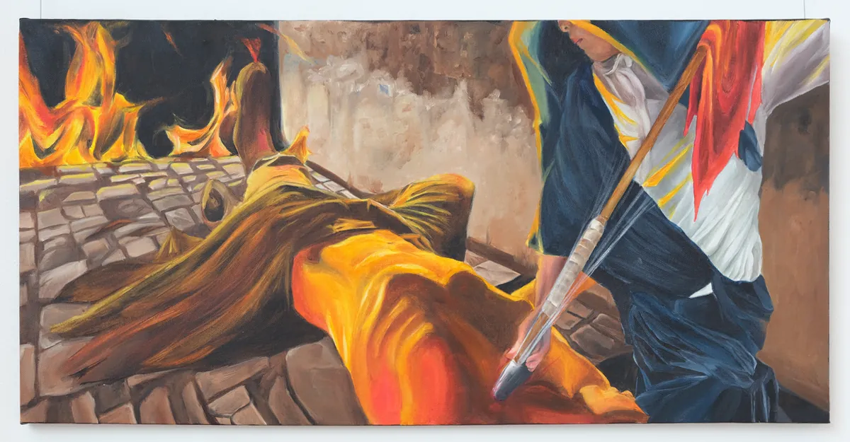 Inspired by the Roman poet Ovid, Deicide in Flames portrays the moment a god is slain by a mortal. The God’s body, once a symbol of divine power, now lies defeated, stripped of its immortality. The surrounding flames signify the aftermath of a fierce battle, consuming the remains of what was once thought to be untouchable. Behind the fire, the deep blackness represents death and the abyss, reinforcing the connection between a fallen God and the descent into oblivion.