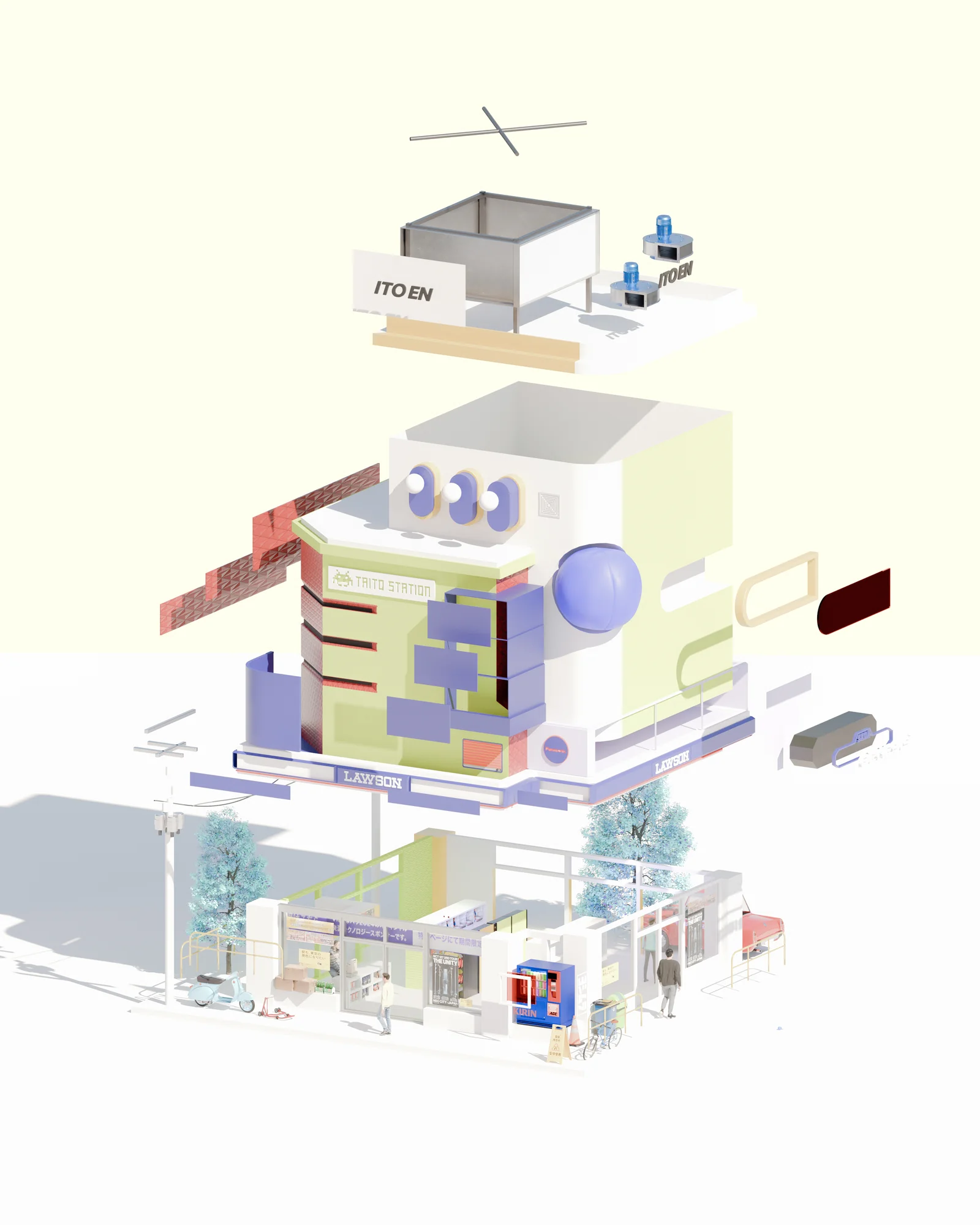 This work critiques the hollow progress of modern society, where corporate expansion overshadows human connection. The franchise-dominated exterior represents capitalism’s grip on urban life, prioritising profit over warmth. The expanded view reveals emptiness symbolising the void beneath these structures. The sterile convenience store reflects the loneliness of modern cities, where interactions are transactional, questioning whether progress, without humanity, is truly meaningful.
