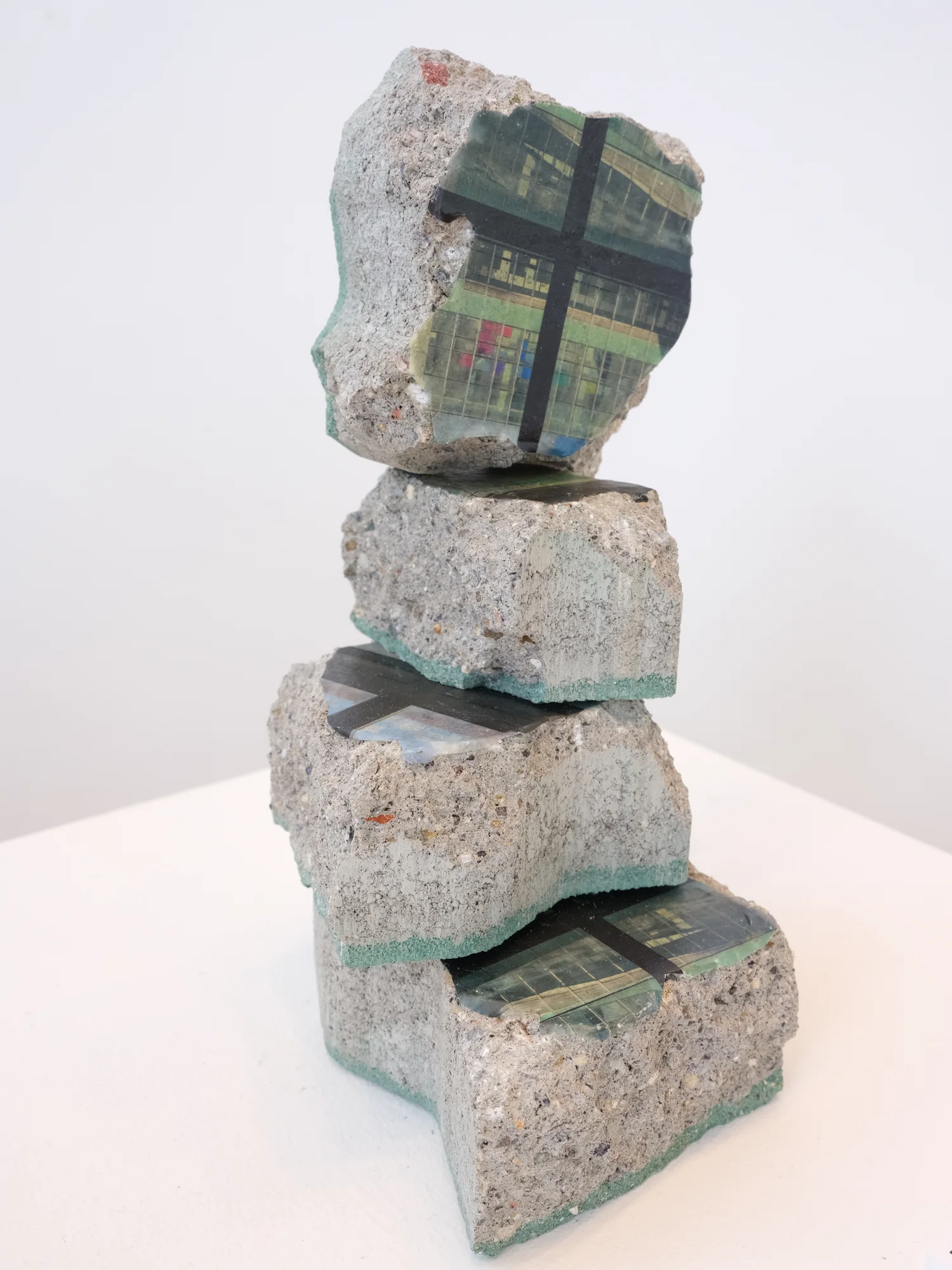 This artwork invites the audience to question whether our ever-growing modern world is heading toward its own destruction. The raw, fragmented bricks mimic towering skyscrapers yet are arranged unevenly to signify capitalism’s instability. Cross-shaped windows introduce Christian motifs, urging reflection on the potential crucifixion of human connections and communities. Through these elements, the piece warns of a fractured future shaped by relentless expansion and societal imbalance.