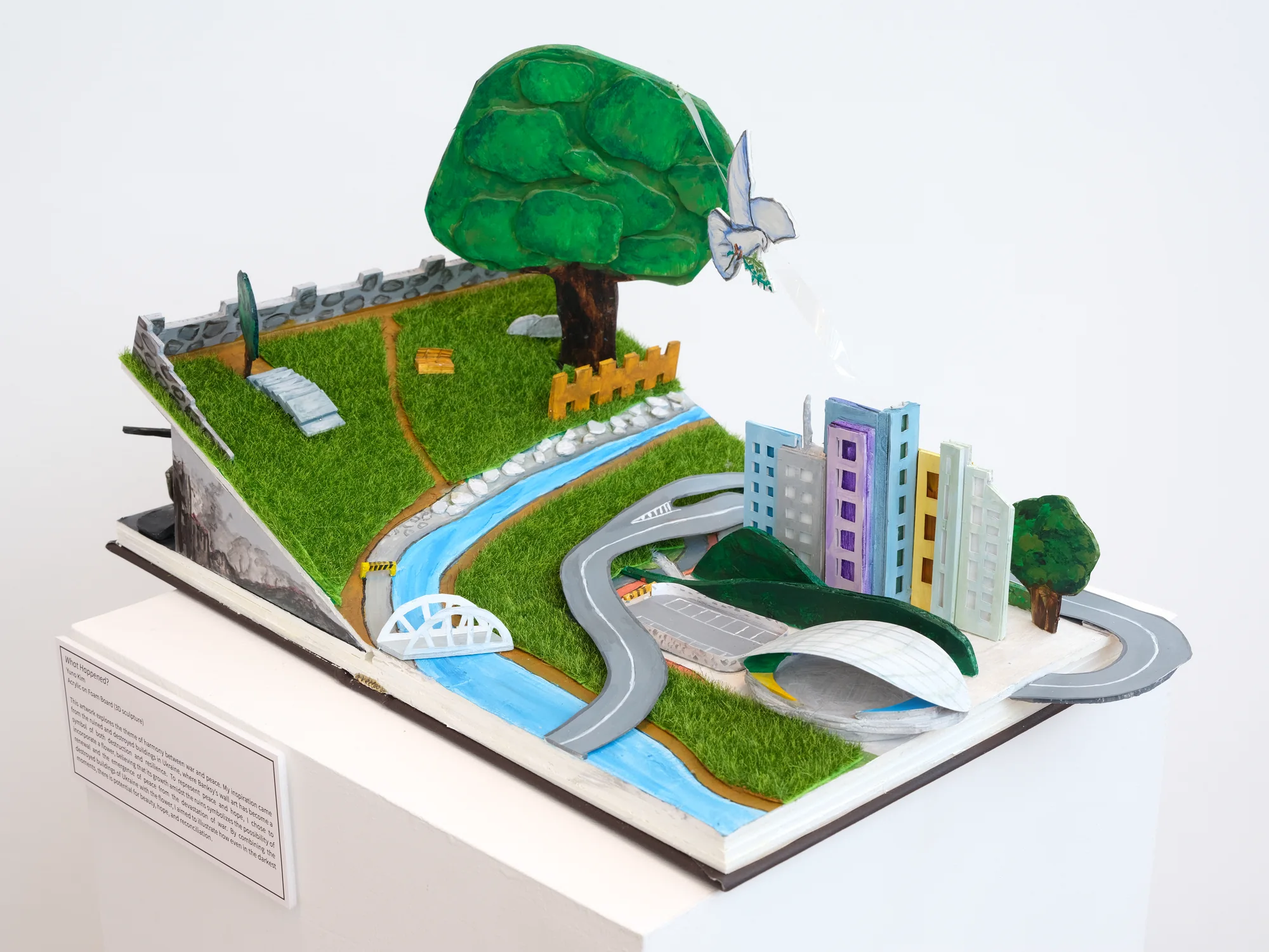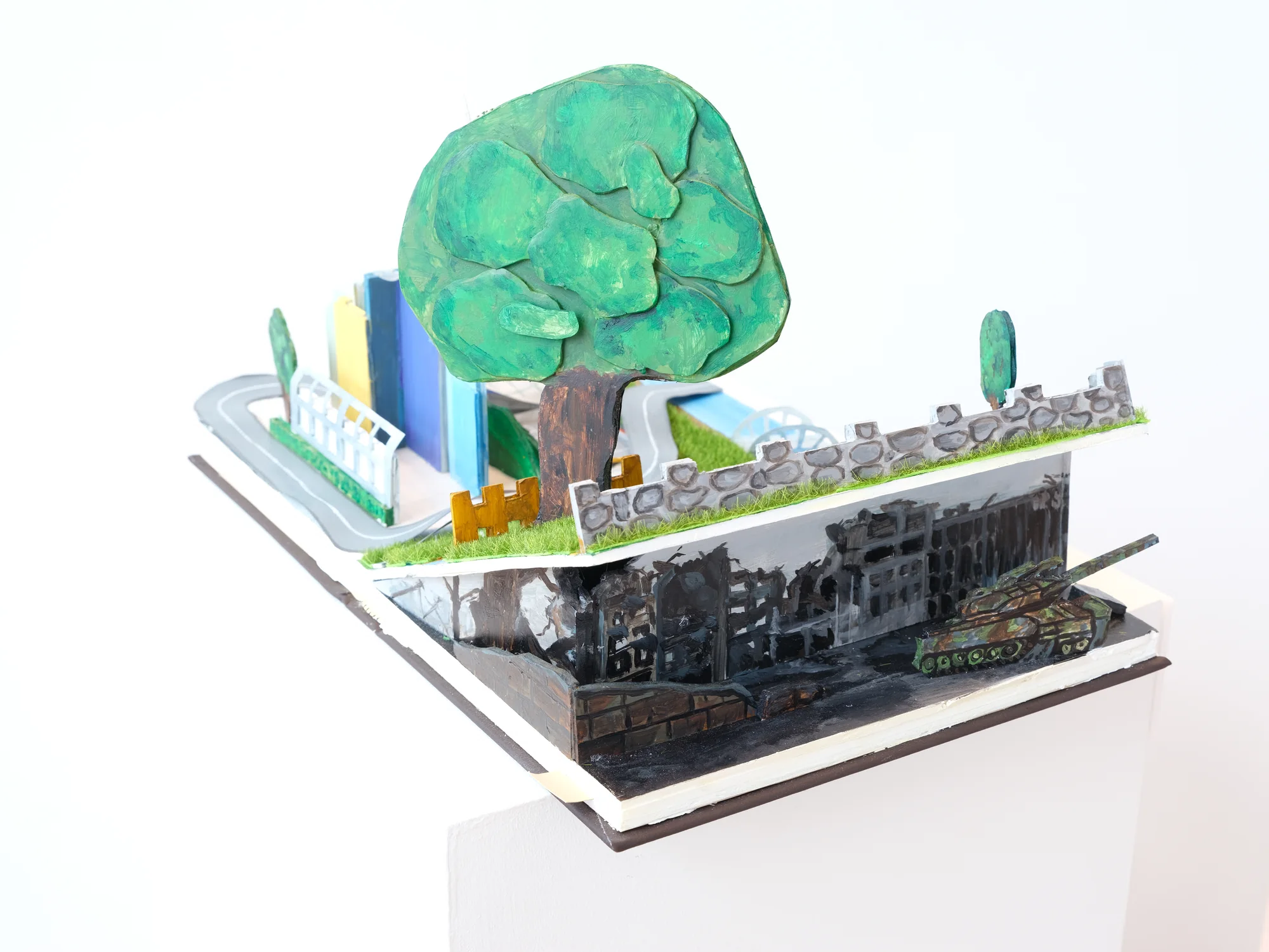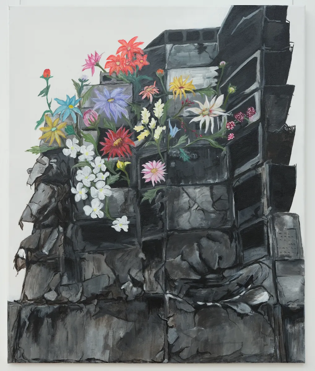 This explores the contrast between hope and despair. The inspiration came from the ruined and destroyed buildings in Ukraine, where Banksy’s wall art has become a symbol of both destruction and resilience. To represent hope, I chose to incorporate a flower, believing that its growth amidst the ruins symbolizes the possibility of renewal and the emergence of peace from the devastation of war. By combining the destroyed buildings of Ukraine with the flower, I aimed to illustrate how even in the darkest moments, there is potential for beauty, hope, and reconciliation.