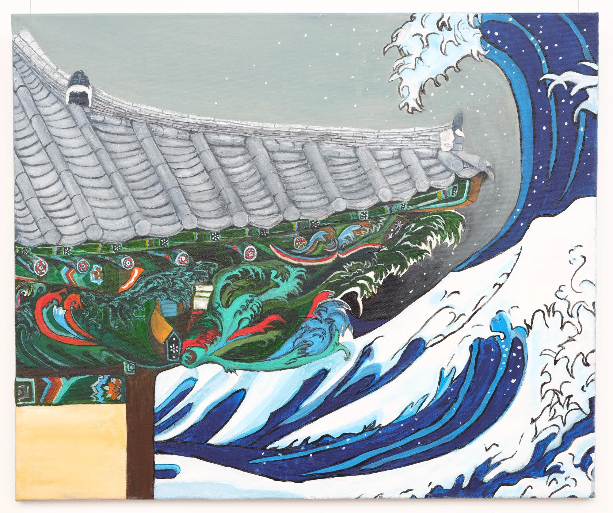 I aim to capture the contrast between land and sea, inspired by the dynamic interplay of these elements. My thoughts were influenced by "The Great Wave off Kanagawa" by Katsushika Hokusai, which encouraged me to envision a fusion of waves and land. To personalize this, I incorporated wave patterns into the architecture of a hanok, a traditional Korean house, reflecting my heritage and honoring my ancestors. The hanok symbolizes stability and a connection to the earth, standing in contrast to the fluid motion of the waves. This piece explores the convergence of history, heritage, and nature’s eternal rhythm.