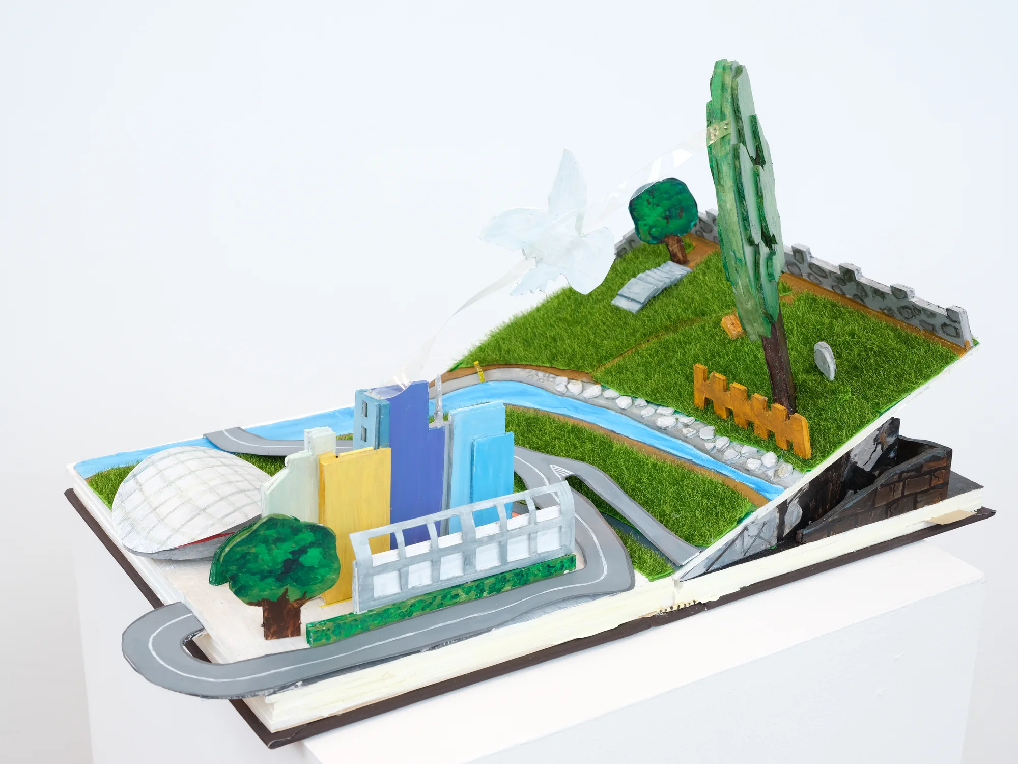 In this piece, my goal was to connect the future and the past through architecture. To represent this contrast, I planned to depict a futuristic building on one side and a traditional Korean house (chogajip) on the other, showcasing the differences between modern and historical design. While reflecting on the concept of time, I was inspired by the idea of a time machine, which led me to incorporate a clock at the center of the artwork. The clock serves as a symbolic link, bridging the gap between these two contrasting time periods and illustrating the flow of time through architecture.